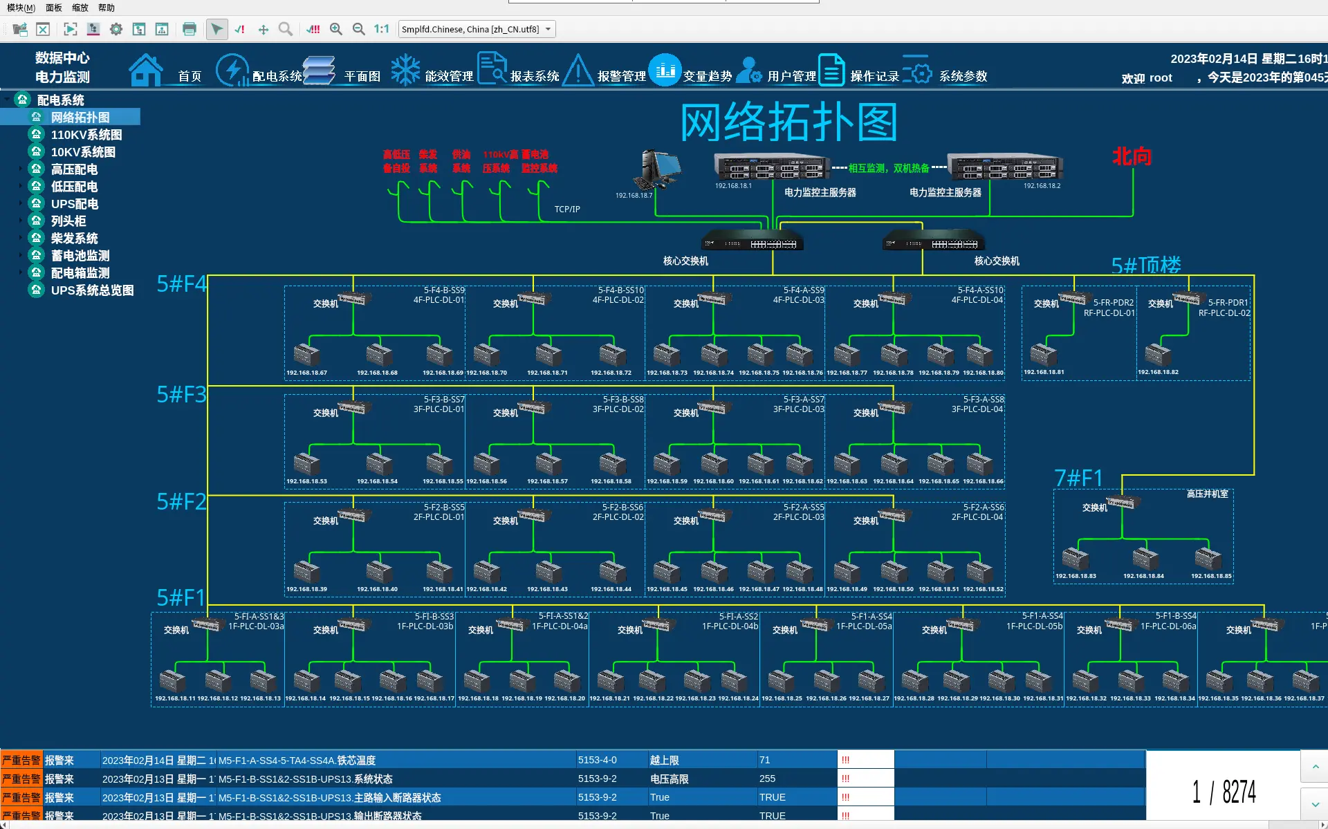 实时监测:对变压器、配电柜、UPS等设备的电压、电流、功率等参数进行动态采集与可视化展示;